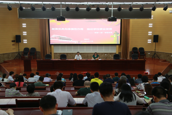 6月22日下午,校党委陈涤平书记以《发挥党员先锋模范作用,推动学校事业发展》为题,为第二临床医学院、信息技术学院、研究生院、图书馆以及机关有关部门的师生党员讲了一堂内涵丰富、深刻生动的“两学一做”专题党课。党课由信息技术学院党总支书记蔡爱华主持。