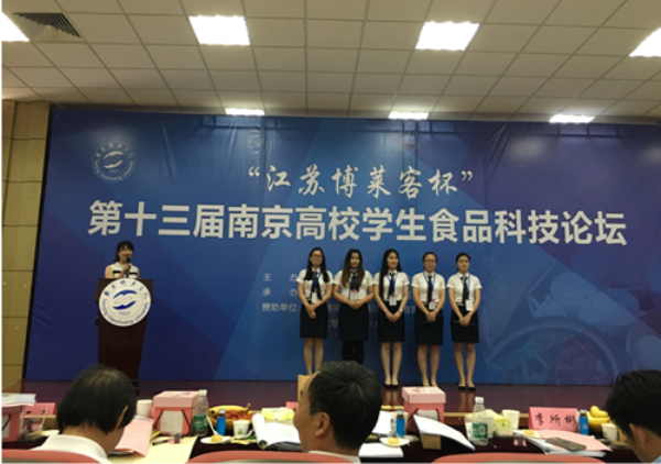 近日,从“江苏博莱客杯”第十三届南京高校学生食品科技论坛组委会传来喜讯,我校药学院食品质量与安全专业李静阳、祝瑛萱、谷雨、施敏、顾一之、贝家桢、刘栩铭同学组成的玉液糕团队和张佳妮、李晓东、虞晓婷、陆丽莎、周洁同学组成的乐思团队分别获得大赛一等奖和二等奖。