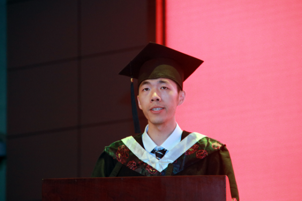 教师代表、卫生经济管理系孙瑞玲教授用真挚的言语为同学们送上了殷切的希望和良好的祝愿。毕业生代表、医学系吴汶轩同学代表全体毕业生表达了对母校、对老师们的感激之情,并分享了对亲情、友情和青年人的理想的认识;并带领全体毕业生向参加毕业典礼的全体老师行谢师礼。