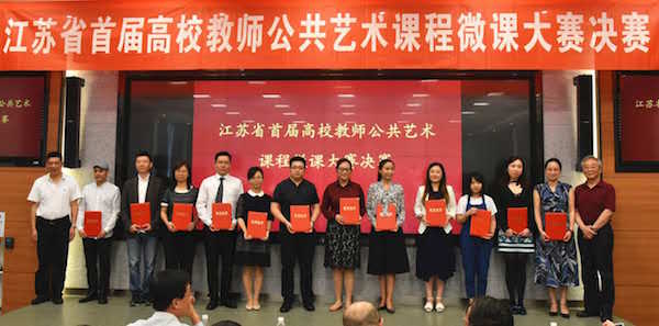 6月27日下午,由江苏省教育厅主办的江苏省首届高校教师公共艺术课程微课大赛决赛及颁奖仪式在南京农业大学举行。教育部艺术教育委员会常委、中国艺术教育促进会秘书长谷公胜,江苏省教育厅副厅长朱卫国,体卫艺教处处长张鲤鲤出席颁奖仪式。