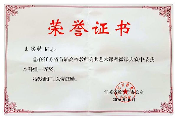 近日,江苏省教育厅下发了《省教育厅办公室关于公布江苏省首届高校教师公共艺术课程微课大赛结果的通知》(苏教办体艺〔2016〕12号)。我校人文与政治教育学院教师王思特、闫春燕分别获得本科组一等奖、本科组三等奖。