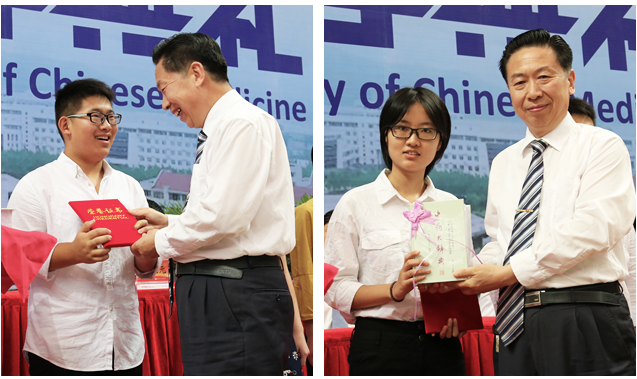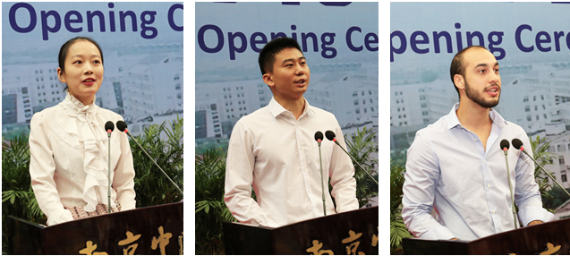 开学典礼上,2016级本科生施乃祺、博士生徐万里、留学生乐天(智利)作为新生代表先后发言。施乃祺同学说“作为新一代的南中医学子,我们的身上肩负着更多的责任和使命,传承中医药,发扬中医药。我们要传承一代代南中医人团结奋进、自信敬业的伟大精神,为做一名优秀的中医药学子而不懈努力,给自己定一个可以实现的小目标,一步一步迈向美好的明天”。徐万里同学说“在生命中最灿烂的阶段迎来了中医药发展的最好时代,不仅要研习专业理论、完成科研任务,更要肩负起传承学术的责任,加强在实践中运用中医药的能力,让越来越多的人感受到中医的博大精深和无限魅力”。留学生乐天说“机会有时候会张开翅膀拥抱我们,也有很多时候需要自己去创造。每个人都要活出有意义的生活,有意义才有趣有味,幸福自然而然就显现出来。医学是一种对他人的服务和贡献,所以我们必须具备一种广阔的胸怀和钢铁般的意志才能达成我们的梦想,同时驱除他人的病痛。”