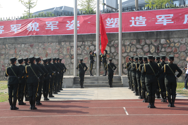 动员大会上,举行了庄严的升旗仪式,我校英姿飒爽的女子国旗班将鲜艳的国旗在操场上冉冉升起,黄桂成副校长向军训团团长王钢上校授军训团团旗。
