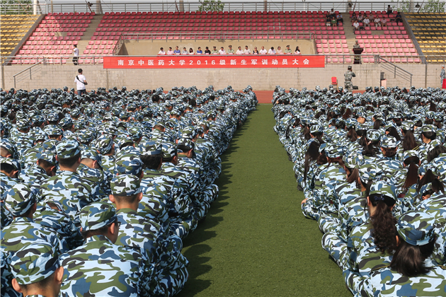 9月9日上午,我校2016级新生军训动员大会在校仙林校区西操场举行。南京中医药大学副校长黄桂成教授,解放军理工大学国防兵工程学院学员大队大队长王钢上校出席动员大会,校军训工作领导小组成员、各学院专职辅导员、2016级本科新生参加大会。大会由校人武部部长、学工处处长屠宏斐主持。