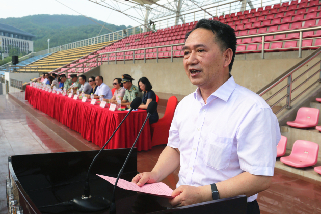 最后,黄桂成副校长总结讲话,他向长期支持我校军训工作的解放军理工大学的首长和教官们表示崇高的敬意,再次强调了军训对大学生们的重要意义,并对参训的2016级新生提出了三点希望:一是要端正态度、服从指挥,在军训中强健体魄;二是要利用军训磨练出坚韧的意志品质;三是要通过军训,学习军人的优秀素质和良好习惯。他期待同学们顺利通过军训的考验,以更加优异的精神面貌,迎接未来大学生活的挑战。