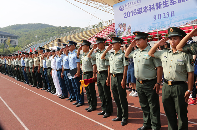9月23日上午,我校2016级本科新生军训汇报表演在仙林校区西操场隆重举行。历经半个月的锤炼摔打、历经十五天的涅槃蜕变,2016级学子们气宇轩昂、英姿飒爽,以整齐的列队等待领导和老师们对军训成果的检阅。解放军理工大学国防工程学院领导、我校校领导和各学院党政负责人、校军训工作领导小组成员出席军训汇报表演。汇报表演由校党委副书记、副校长王长青教授主持。