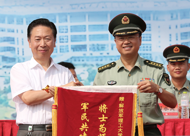 校党委陈涤平书记代表学校向解放军理工大学国防工程学院赠送锦旗