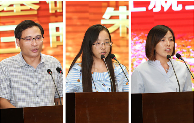 招生宣讲专家王明强教授、招生宣传工作先进个人朱玉婕同学、就业工作先进个人沈静老师作为获奖代表发言