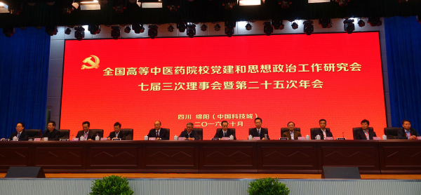 10月18日—19日,全国高等中医药院校党建和思想政治工作研究会七届三次理事会暨第二十五次年会在绵阳召开,本次会议由四川中医药高等专科学校承办,来自全国25个省、市、自治区的28所中医药高等院校、中医院系、民族医药学院及高职高专校的党委书记和专家代表近百人参加大会。我校党委陈涤平书记出席会议并在大会论坛上作了题为《以“两学一做”推动人才强校战略的实践与思考》的主旨报告,从四个方面系统介绍了南京中医药大学党委近年来坚持“两手抓两促进”,以“两学一做”推动人才强校战略深入实施的举措和取得的成效,得到与会兄弟院校的共鸣和一致好评。