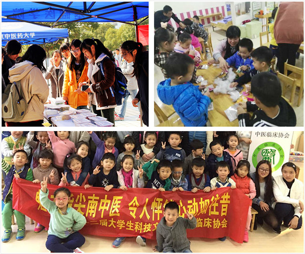 11月4日到10日,我校中医临床协会在东方天郡爱儿坊幼儿园及我校大学生活动中心北广场举办了“指尖上的魅力中医”系列活动。