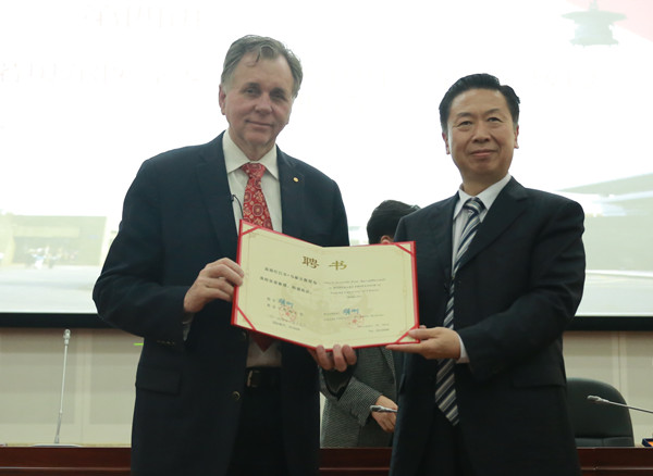 校党委书记陈涤平教授为Marshall教授颁发证书
