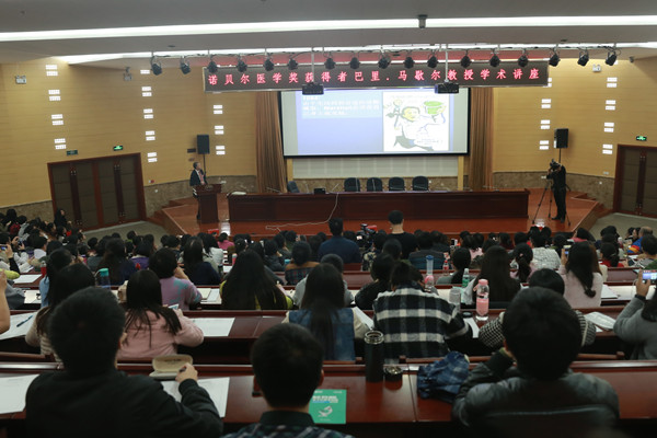 2016年11月19日,诺贝尔奖获得者、西澳大利亚大学Barry J. Marshall(巴里·马歇尔)教授来访我校。下午四点丰盛楼学术报告厅座无虚席,Marshall教授以“浅谈幽门螺杆菌”为题,为全校师生带来了一场精彩的学术报告。讲座由副校长谭仁祥教授主持。