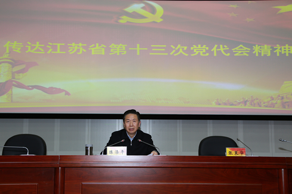 陈书记强调,作为高等院校,我们要把六中全会和省党代会的精神贯彻落实到学校加强党的建设、推进改革发展的各项工作之中,坚定不移地实施“人才强校、质量兴校”战略,推动学校各项事业发展和全面从严治党迈上新台阶,为建设“强、富、美、高”的新江苏作出应有的贡献。