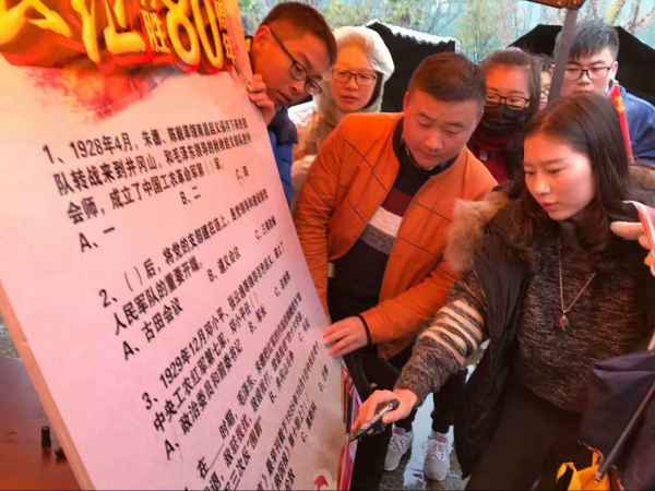 活动于早上九点正式开始,两百余名师生在学院广场集结完毕,学院党委书记唐传俭、副书记陈小进分别为“三大主力”授军旗和校旗。每支“方面军”在老师的带领下,从南京中医药大学翰林学院出发,根据事先抽取的不同行军路线,徒步十二公里,直奔中国人民解放军海军诞生地纪念馆。为尽可能还原长征历程,学院在每条行军路线上都设置了四个关卡,每支队伍必须完成“巧渡大渡河”长征诗词接龙、“四渡赤水”党史党情限时答题、“翻越大雪山”极速跳绳、“胜利会师”红歌嘹亮四个环节,才算胜利完成“长征”,而且在关卡的每一次失误或者错误,都将“牺牲”一定数量的战友,最终既要看哪支队伍率先到达终点,还要看队伍的“存活率”。