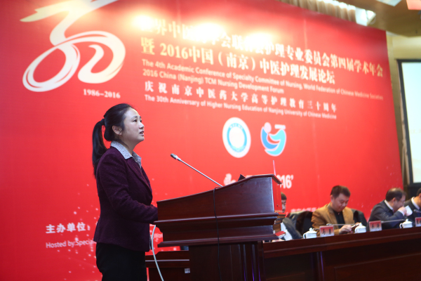 2016年11月26-27日,南京中医药大学高等护理教育三十周年庆祝大会暨世界中医药学会联合会护理专业委员会第四届学术年会在我校仙林校区丰盛健康楼隆重召开。世界中医药学会联合会秘书长桑滨生、学术部主任关涛,国家中医药管理局政策法规司副司长杨荣臣,江苏省卫计委中医科教处处长朱岷,江苏省教育厅高教处处长袁靖宇,南京中医药大学党委书记陈涤平,世界中联护理专业委员会会长、南京中医药大学副校长徐桂华,南京中医药大学护理学院党委书记姚小平等领导及海内外各界嘉宾、师生校友代表500余人参加了大会。六十余家兄弟院校和单位发来贺信和贺电。大会由南京中医药大学护理学院马勇院长主持。