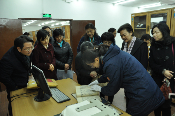 委员们参观我校图书馆古籍书库
