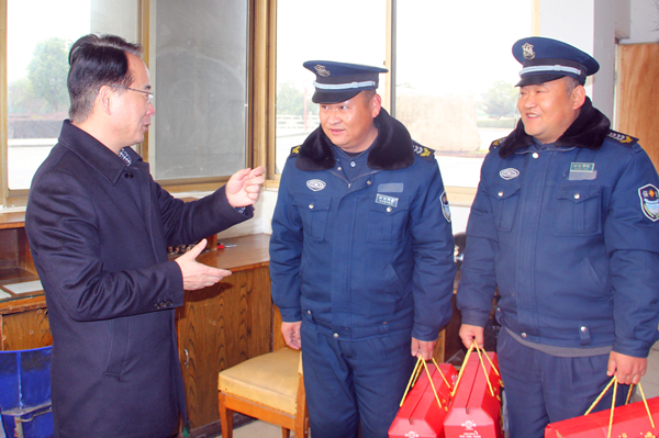 程革副校长一行还走访慰问了收发室、保卫处门岗、科技楼锅炉房、实验动物中心、食堂、杏苑宾馆等有关单位值班人员,对他们春节期间坚守岗位表示感谢,并要求大家坚守岗位、尽职尽责,为学校寒假期间的各项工作提供坚实保障。