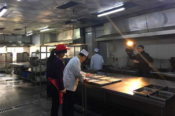 食堂为春节留校学生精心准备了水饺和元宵(图为江苏广电教育频道采访拍摄)
