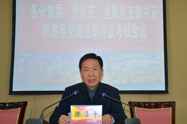 校党委陈涤平书记在总结讲话时指出,开展基层党组织书记抓基层党建工作述职评议考核,是深入贯彻落实中央和省委部署要求,严肃党内组织生活,严格党员教育管理,严明党建工作责任,进一步推进全面从严治党向基层延伸的重要举措。他强调,党委组织开展基层党建述职评议考核,主要目的就是通过述职评议考核,向全校各级党组织特别是主要负责人,传递“抓好党建是天职、不抓党建是失职、抓不好党建是不称职”的强烈信号,把全校各级党组织和书记们的注意力进一步引导到抓基层打基础上来,使党要管党、从严治党的要求真正落到实处,形成浓厚的抓党建促发展工作氛围。同时陈书记充分肯定了各分党委、党总支、直属党支部的党建工作特色和一年来抓党建工作的成绩,并代表校党委,向全校各基层党组织负责人和广大党员表示衷心的感谢!