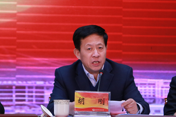 胡刚校长宣读学校《关于表彰第九届廉洁文化进校园活动获奖集体的通报》