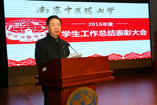 陈涤平书记在大会总结发言中肯定了过去一年我校学生工作取得的成绩,并为同学们描绘了中医药事业发展的美好蓝图,鼓励同学们在新的一年志存高远、刻苦勤奋、全面发展,实现青春无悔、大学无悔、人生无悔。同时他也指出“一流的人才培养应有一流的学生工作”,要求我校2017年的学生工作,要继续争创一流,锐意进取、改革创新,为培养一流人才,创一流中医药大学做出应有的贡献。