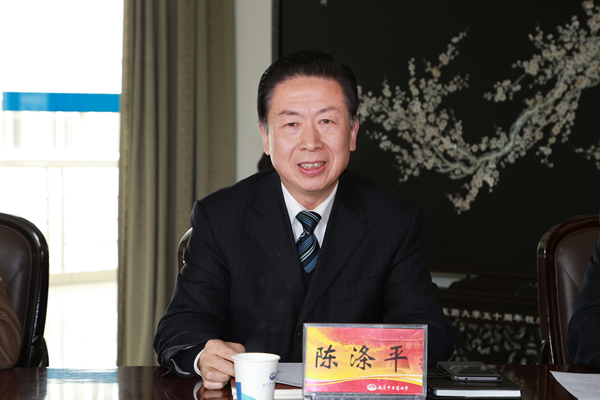 陈涤平书记向新闻媒体介绍我校中医养生学专业创办过程