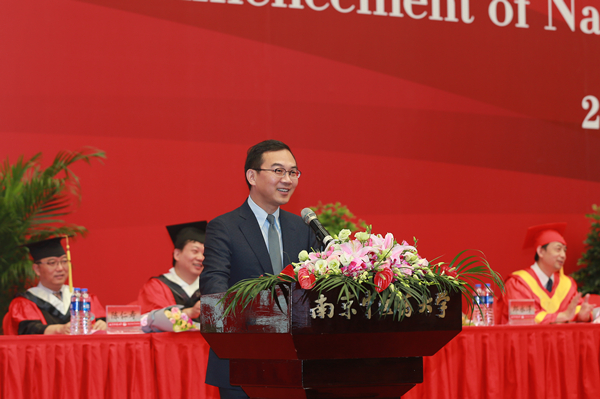 原中央电视台新闻联播主播郎永淳先生作为校友代表作了饱含深情的发言。他深情回忆起自己二十三年前从南中医毕业的情景,回顾了自己的求学经历。他表示,毕业并不是结束,而是一个真正的开始。自己从医学到新闻,再到互联网,角色和行业在变换,但变不离宗,在南中医所学让自己受用至今、也应用至今。他勉励同学们做时间的朋友,精勤不倦,不断地学习,不放弃探索。最后,祝愿学弟学妹们能主动管理好自己的人生,用一生去学习,用情怀去改变,做好自己的“主持人”!