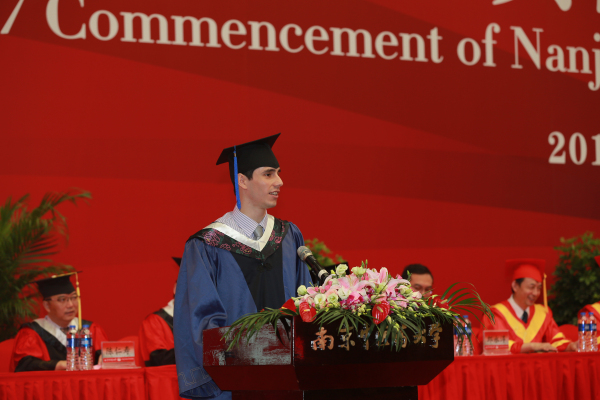 留学生代表、国际教育学院委内瑞拉籍硕士研究生克劳迪欧同学发言