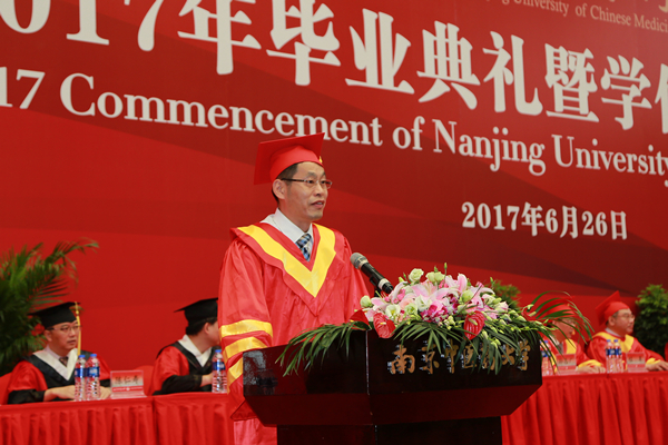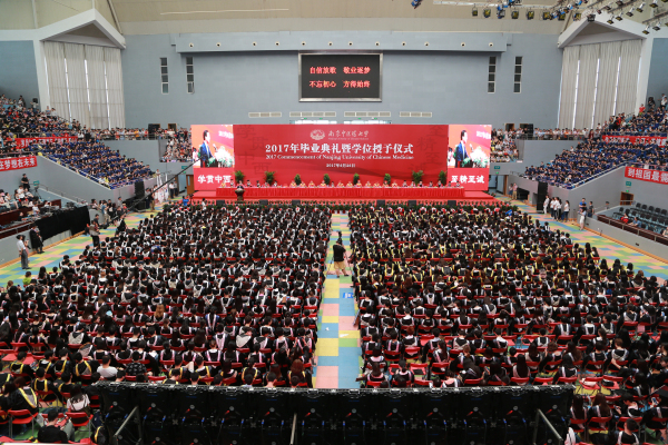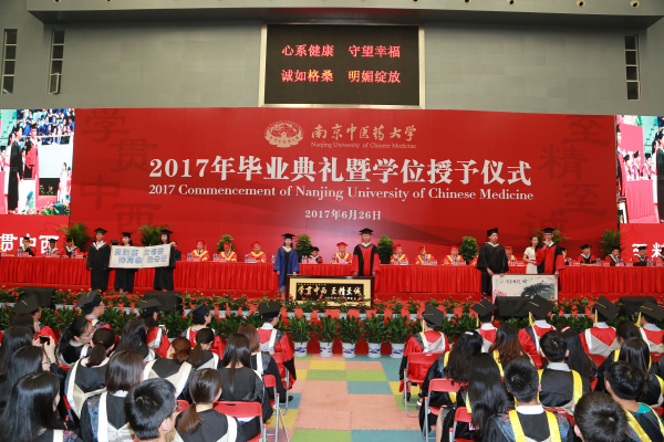 6月26日上午,南京中医药大学2017年毕业典礼暨学位授予仪式在仙林校区体育馆隆重举行。全体校领导,校学位评定委员会委员,校学生工作领导小组全体成员,教师代表,毕业生亲友,全体2017届毕业研究生、留学生、本科生出席了典礼。