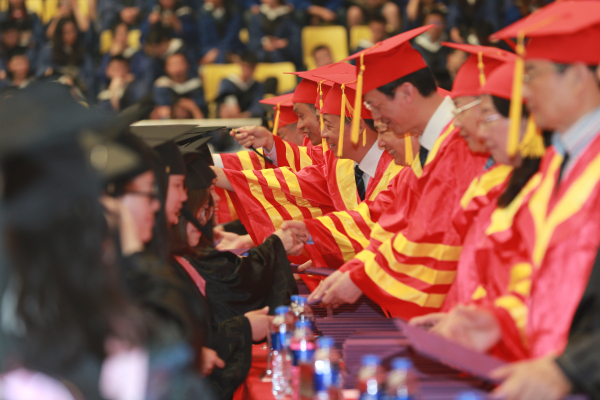 校领导和校学位评定委员会委员为毕业生们颁发学位学历证书