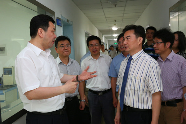 8月23日上午,江苏省委常委、副省长杨岳率江苏省发改委王汉春副主任、江苏省海洋与渔业局张建军副局长、科教处石纪章处长等一行,专程来到我校江苏省海洋药用生物资源研究与开发重点实验室进行实地调研、考察海洋生物医药产品的研发情况。我校谭仁祥副校长、校长办公室郝达富主任、黄一峰副主任、科学技术与产业处史丽云处长、尹刚副处长、药学院胡立宏院长等一起接待并陪同考察。