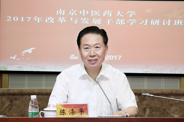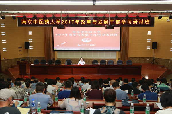 8月25日上午,我校2017年改革与发展干部学习研讨班在丰盛楼学术报告厅顺利开班。本次学习研讨班的主要任务是:深入学习贯彻习近平总书记“7.26”重要讲话精神和中共江苏省委十三届二次全会精神,以进入一流学科建设高校为契机,以创建中国特色世界一流中医药大学为使命,着力提升我校干部队伍的政治素养和管理能力,推动学校“十三五”规划顺利实施和改革发展各项事业不断前进,以优异成绩迎接党的十九大胜利召开。全体校领导、全体中层干部、近年来学校引进的高层次人才代表、全体正科职干部、教研室(研究室)主任及高级职称教师代表、一附院、二附院、附属八一医院及三附院、附属中西医结合医院的院领导和主要职能部门负责人代表近380人出席了开班仪式。