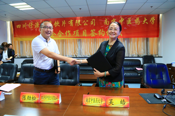 吴皓教授与四川仟源中药饮片公司陈劲松总经理签订项目合作协议