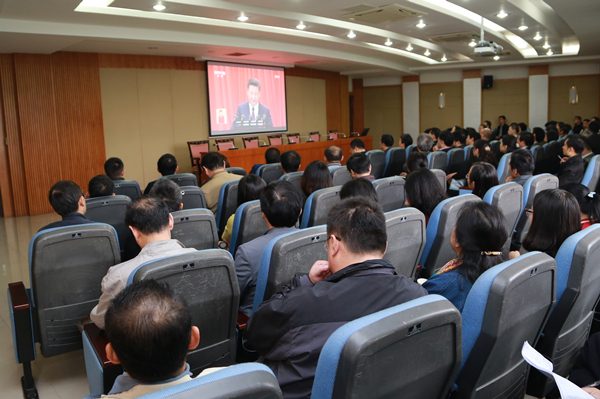 根据统一部署,我校全体校领导、中层干部、广大师生医护员工怀着喜悦的心情分别在一个主会场、六个分会场集中收听收看了网络视频现场直播,仔细聆听了习近平总书记所作的工作报告。