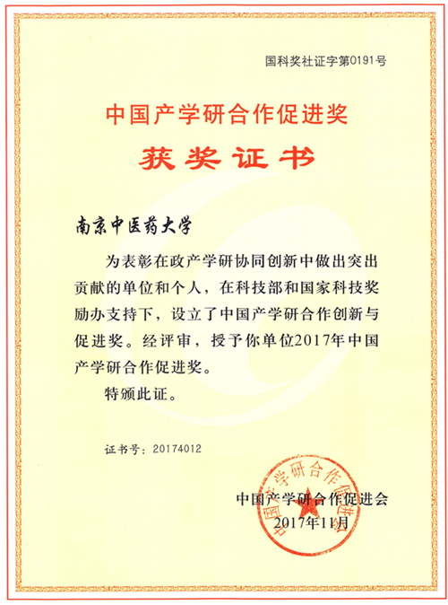 我校近年来在党委的高度重视下,在党政工作的重点部署下,积极推进科技成果向现实生产力转化,依托国家技术转移示范机构平台,以中医药技术转移服务为龙头,以特色化、专业化、信息化和国际化为发展方向,集聚了丰富的技术、市场、政策和管理资源,在产学研合作创新工作中成绩突出,系此次获奖的唯一一所中医药院校。