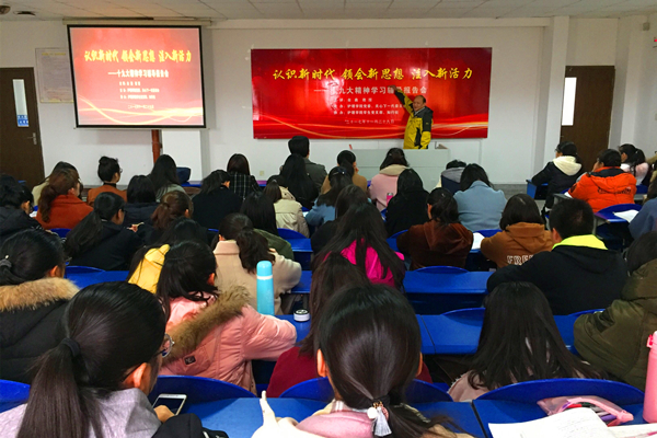 11月29日下午,护理学院党委在B12-219阶梯教室召开学习宣传贯彻党的十九大精神辅导报告会。报告会邀请我校人文与政治教育学院原院长金鑫教授为全院师生党员和入党积极分子代表等一百余人,作党的十九大精神专题辅导。报告会由学院党委姚小平书记主持。