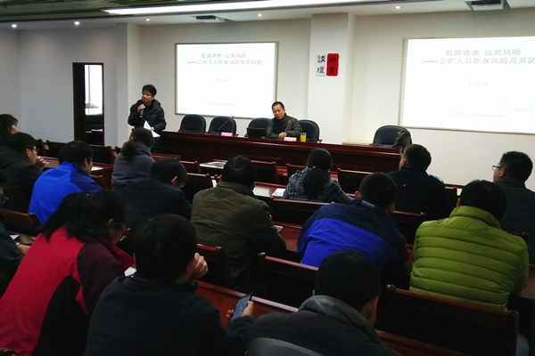 12月6日下午14:30,由药学院党委主办的“抵御诱惑,远离风险——公职人员职业风险及其防控”主题讲座在图书馆305室正式开讲。本次讲座特邀南京大学法学院博士生导师、南京大学犯罪预防与控制研究所所长狄小华教授主讲。药学院全体教师认真聆听了讲座。