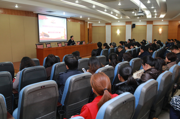 2017年12月7日下午,校党委陈涤平书记为各分党委、党总支、直属党支部书记进行了学习贯彻党的十九大精神培训,各党群部门负责人,全体教工党支部书记一并参加了本次培训。