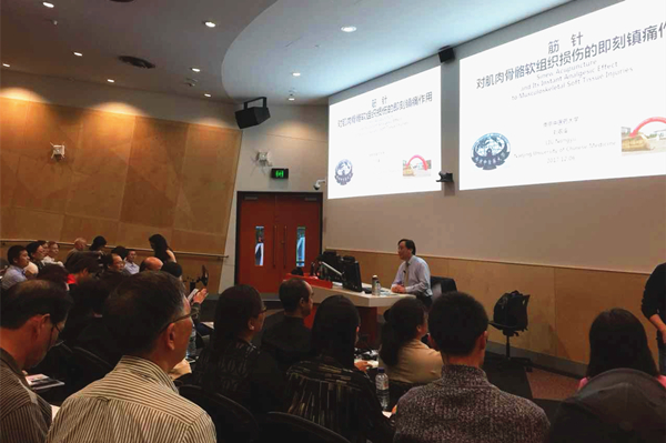 刘农虞教授作题为《筋针对肌肉骨骼软组织损伤的即刻镇痛作用》的学术讲座