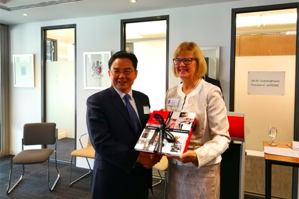 斯维本科技大学Linda Kristjanson AO校长向谭仁祥副校长赠送纪念品