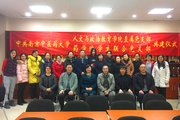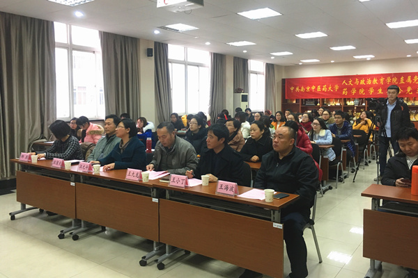 为了全面贯彻落实习近平新时代中国特色社会主义思想和党的十九大精神,紧密围绕立德树人中心环节,把思想政治工作贯穿教育教学全过程,实现全程育人、全员育人和全方位育人,我校人文与政治教育学院直属党支部与药学院学生联合党支部于2017年12月13日启动了支部共建仪式。党委组织部王九龙部长,党委宣传部汪元平副部长,人文与政治教育学院王小丁副院长,人文与政治教育学院直属党支部邹苏书记,药学院党委狄留庆书记,药学院王海波副书记、副院长出席了仪式。人文与政治教育学院教师代表、药学院各学生党支部书记,以及药学院全体学生党员和部分入党积极分子参加了本次仪式。仪式由药学院学生工作办公室徐钰君主任主持。
