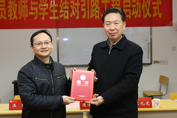 陈涤平书记向二十余位结对指导老师颁发聘书