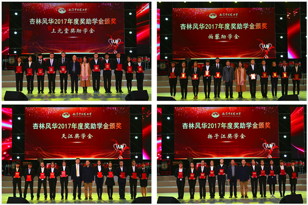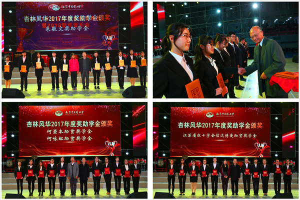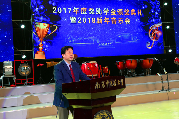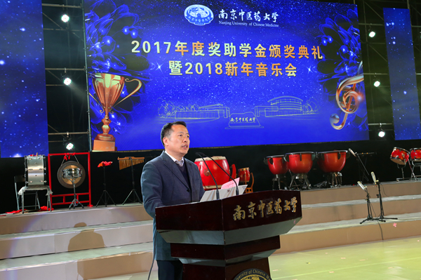2017年,在广大师生的共同努力下,在社会各界的殷切关心下,杏林学子不负众望、成绩斐然,共有4330人次获得各级各类奖学金,3941人次获得各级各类助学金,其中社会类奖助学金35项。为祝贺并表彰这些刻苦钻研、勇于探索的优秀学子,感谢在我校捐资助学的团体、个人和基金会,12月25日,南京中医药大学“杏林风华”2017年度奖助学金颁奖典礼暨“杏林钧乐”2018新年音乐会在仙林校区体育馆隆重举办。在我校设立奖助学金的团体、个人和基金会代表,校领导、校学生工作领导小组全体成员、全体辅导员、学业指导教师以及学生代表1500余人齐聚一堂,共同见证了这一荣耀时刻。