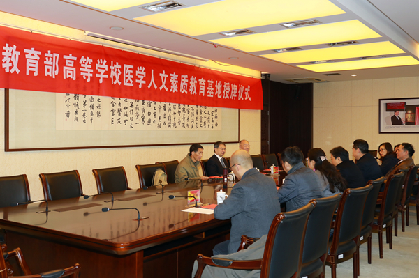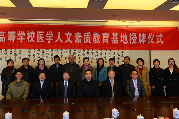 2018年1月18日上午,教育部高等学校医学人文素质教学指导委员会主任委员、天津中医药大学原党委书记张金钟教授,教育部高等学校医学人文素质教学指导委员会委员南京医科大学王锦帆教授、东南大学张开金教授,莅临我校为教育部高等学校医学人文素质教育基地授牌。学校陈涤平书记、黄桂成副校长,党委宣传部、党委学生工作部、教务处、研究生院、人文与政治教育学院等部门负责人,基地骨干成员参加了授牌仪式。张策华副书记主持欢迎仪式。