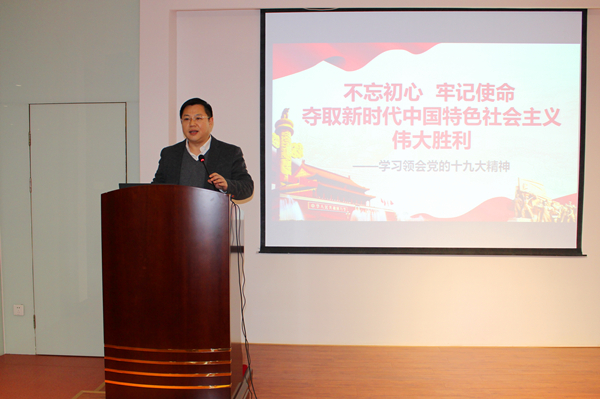 程海波副校长从“新时代中国特色社会主义的深刻变革、伟大实践、理论指导、基本方略、战略安排、行动纲领、坚强领导”七个方面对十九大报告精神进行了全面而详细的解读。党课内容紧紧围绕习近平新时代中国特色社会主义思想,介绍了我国发展新的历史方位,深入剖析了如何理解把握“新时代”这一重大判断,总结了党中央在十八大以来中国特色社会主义发展的十大历史性成就,详细阐述了新时代中国特色社会主义思想的明确方向。程海波副校长在总结中指出,高等教育在决胜全面建成小康社会、全面建设社会主义现代化强国中具有重要战略地位,高校教师在当今社会建设中扮演着十分重要的角色,对新时代进行解读和把握,对于教师来说具有重要意义。党员教师们应将思想和行动统一到党的十九大精神上来,把智慧和力量凝聚到落实党的十九大确定的各项任务上来,不断通过学习和升华,成为为新时代的美好明天贡献力量的一份子。