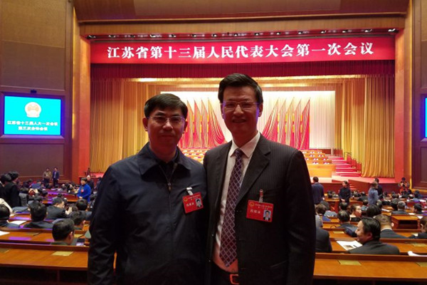 省人大常委、我校副校长、附属医院院长、第一临床医学院院长方祝元(右),省人大代表、我校第一临床医学院教授孙玉明(左)在江苏省十三届人大一次会议现场