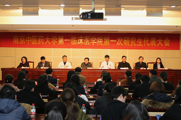 2018年2月1日下午2点,南京中医药大学第一临床医学院第一次研究生代表大会在南京中医药大学附属医院南院6楼学术报告厅隆重召开。校党委副书记、副校长夏有兵教授,副校长、第一临床医学院及附属医院院长方祝元教授,校党委常委、附属医院党委书记翟玉祥教授,校研究生院殷忠勇书记,校团委姜劲松书记,第一临床医学院常务副院长汪悦教授,第一临床医学院党委书记周惠芳教授以及来自校研究生院和学院的领导、老师出席了本次大会,全院138名学生代表参加了会议。