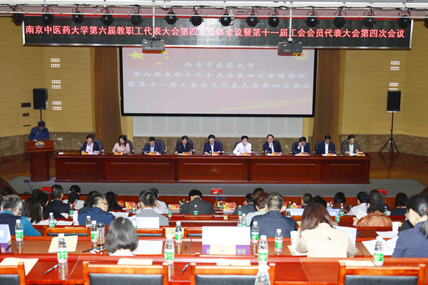 2018年4月2日,南京中医药大学第六届教职工代表大会第四次全体会议暨第十一届工会会员代表大会第四次会议在仙林校区丰盛楼学术报告厅举行。本次会议应到正式代表154人,实到130人。全体在宁校领导以及我校各级人大代表、政协委员、民主党派代表和部分中层干部共81人列席了会议。会议由党委副书记、纪委书记、教代会执委会主任张策华同志主持。