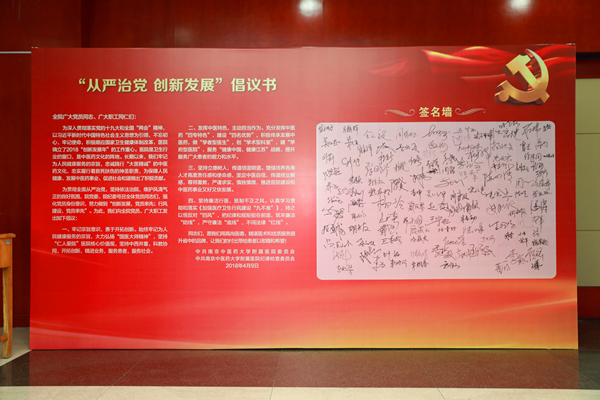 最后,工作人员宣读“从严治党,创新发展”倡议书,倡议全院党员牢记宗旨意识,勇于开拓创新;发挥中医特色,主动担当作为;坚持立德树人,传道信道明道;坚持廉洁行医,抵制不正之风,努力做到“创新发展,党员率先;行风建设,党员率先”。会后,全体参会人员在倡议书展板上郑重签名。