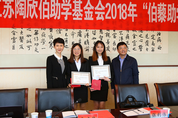 江苏陶欣伯助学基金会李建伟理事长、张利伟秘书长为我校2018年伯藜之星颁奖